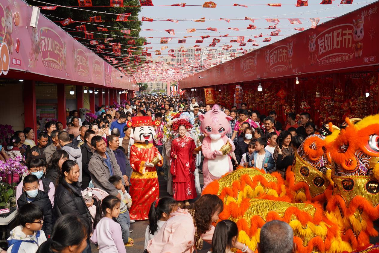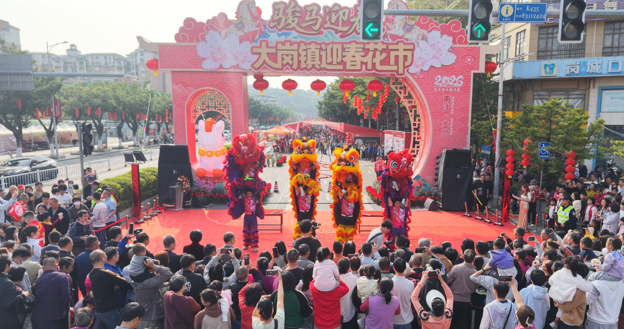 2月7日,南沙大岗迎春花市正式开市。继2025年迎客55万人次,创下全区摊位最多、规模最大纪录,今年再度扩容升级,集结超280个摊位、176场演出,创新打造集“白天赏花购年货+夜晚观灯看演出+线上云逛助农”于一体的新春嘉年华。